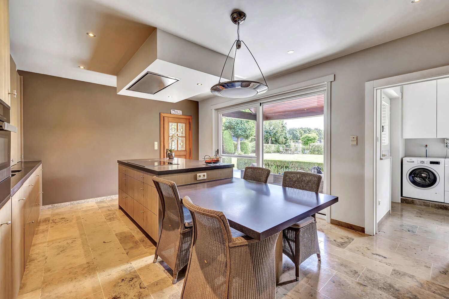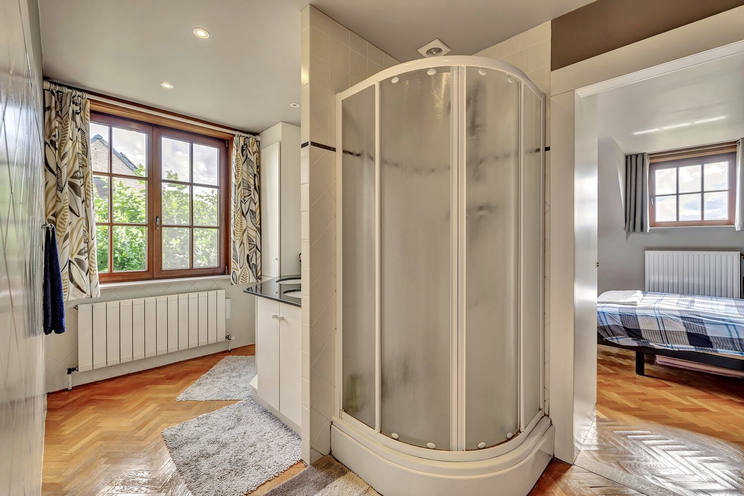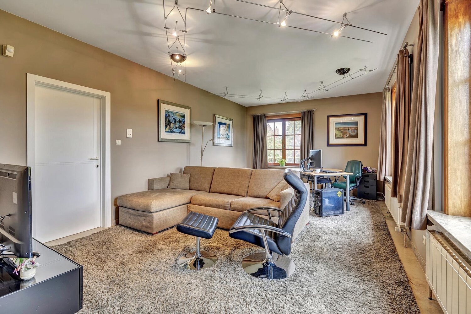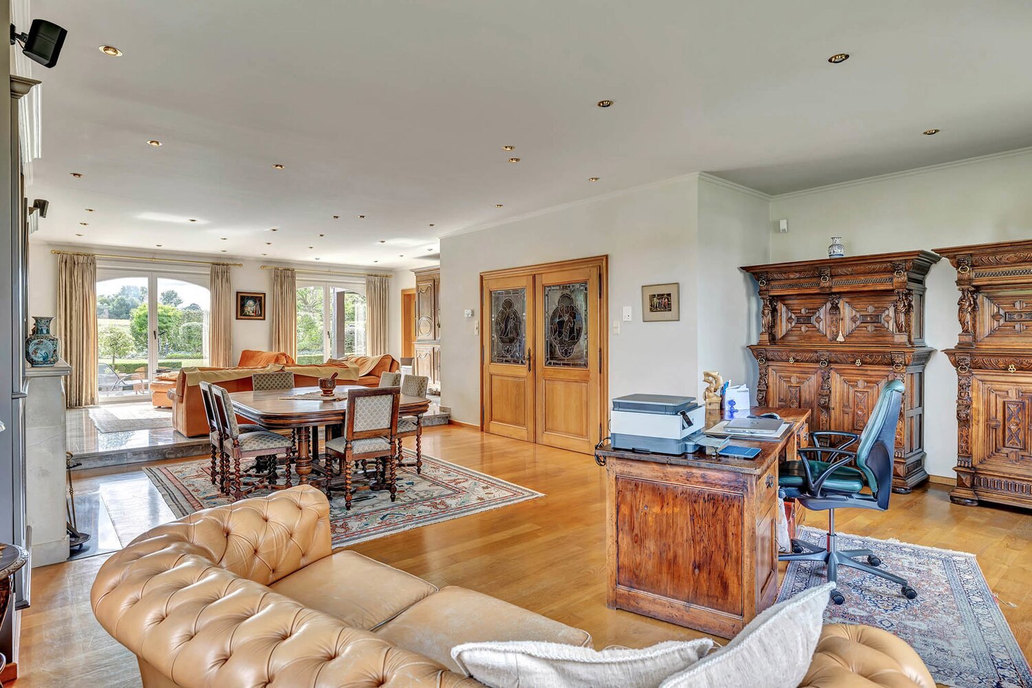 Voor meer info of een bezoek, bel 053 59 49 34 - Voor meer foto's, check www.topo-immo.be - Op een prachtige, groene ligging in Lennik bevindt zich deze hoogwaardig afgewerkte villa. De locatie vormt meteen de eerste troef: midden in het groen, in een rustige straat en toch op slechts enkele minuten van het centrum van Lennik, waar u alle nodige faciliteiten (winkels, openbaar vervoer, scholen, …) terugvindt. De woning werd gebouwd in 1993 en doorheen de jaren perfect onderhouden. Ze is volledig opgetrokken in beton en beschikt over een onderkeldering van ca. 60 m², twee inpandige garages en drie buitenstaanplaatsen. De totale bewoonbare oppervlakte bedraagt maar liefst ca. 550 m². We betreden de woning via de stijlvolle inkomhal die toegang biedt tot de verschillende ruimtes. Het gelijkvloers omvat een ruime, lichtrijke woonkamer met aansluitend de vernieuwde, hyper uitgeruste keuken met praktische berging. Daarnaast zijn er de garages en een bureauruimte van 30 m², die tevens kan ingericht worden als vijfde slaapkamer. Op de eerste verdieping bevinden zich vier royale slaapkamers. De masterbedroom (ca. 45 m²) beschikt over een dressing en een eigen badkamer. Een tweede slaapkamer werd voorzien van aansluitingen voor een douchekamer (nog te installeren). De derde en vierde slaapkamer delen een gemeenschappelijke badkamer. De zolder, bereikbaar via een vaste trap, biedt extra opbergruimte. Buiten geniet u van een volledig aangelegde, zuidgerichte tuin met terras, waar rust en privacy centraal staan en u een prachtig uitzicht heeft op de omliggende natuur. Bovendien werd recent een kwalitatief tuinhuis in hoogwaardig materiaal geplaatst. Kortom: deze villa combineert ruimte, comfort en een uitstekende ligging midden in het groen, vlak bij het centrum van Lennik. Gunstig EPC (B) - Prachtige ligging - Rustige straat - Betonnen constructie - Instapklaar - Goed onderhouden - CV op gas - Dubbele beglazing - Hoogwaardige materialen