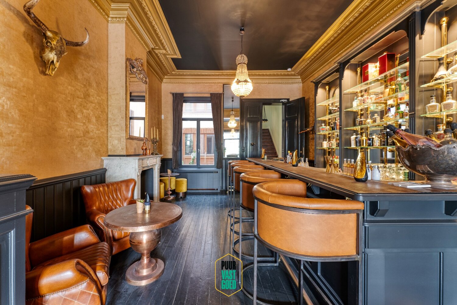 Een niveau hoger ontvouwt zich een eclectische bar die uitnodigt tot lange avonden en onvergetelijke momenten. Alles klopt: het meubilair, de aankleding, de sfeer — en ja, dit alles is inbegrepen. De loggia met avondzon en aparte toegang maakt het plaatje compleet.