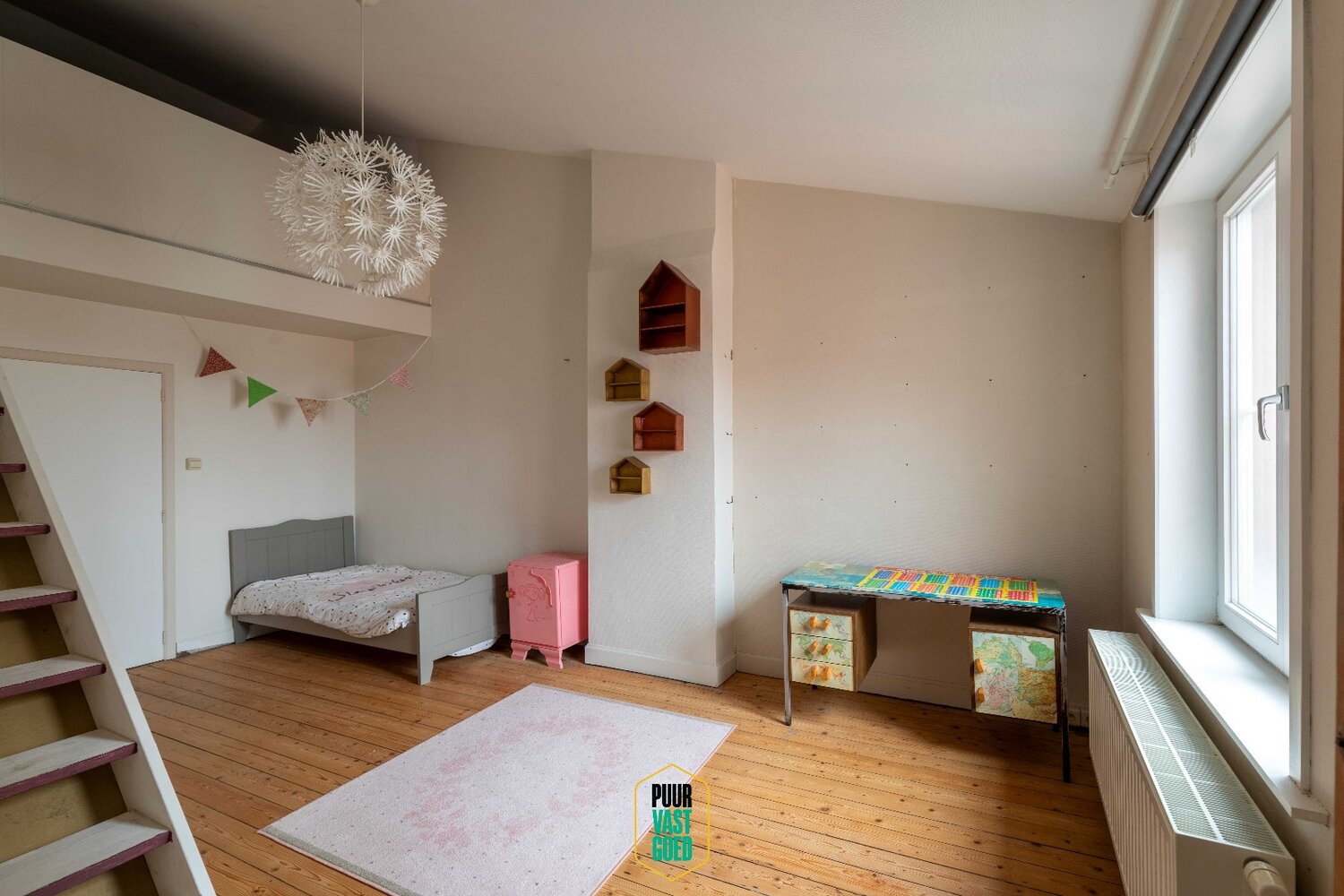 De leefverdieping combineert salon, open keuken en eetkamer tot één harmonisch geheel: nieuw, design, verfijnd en onweerstaanbaar. Daarboven wachten nog twee zeer ruime slaapkamers, een douchekamer en een mezzanine met toekomstplannen voor een dakterras.