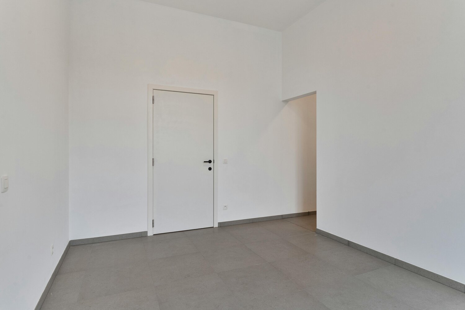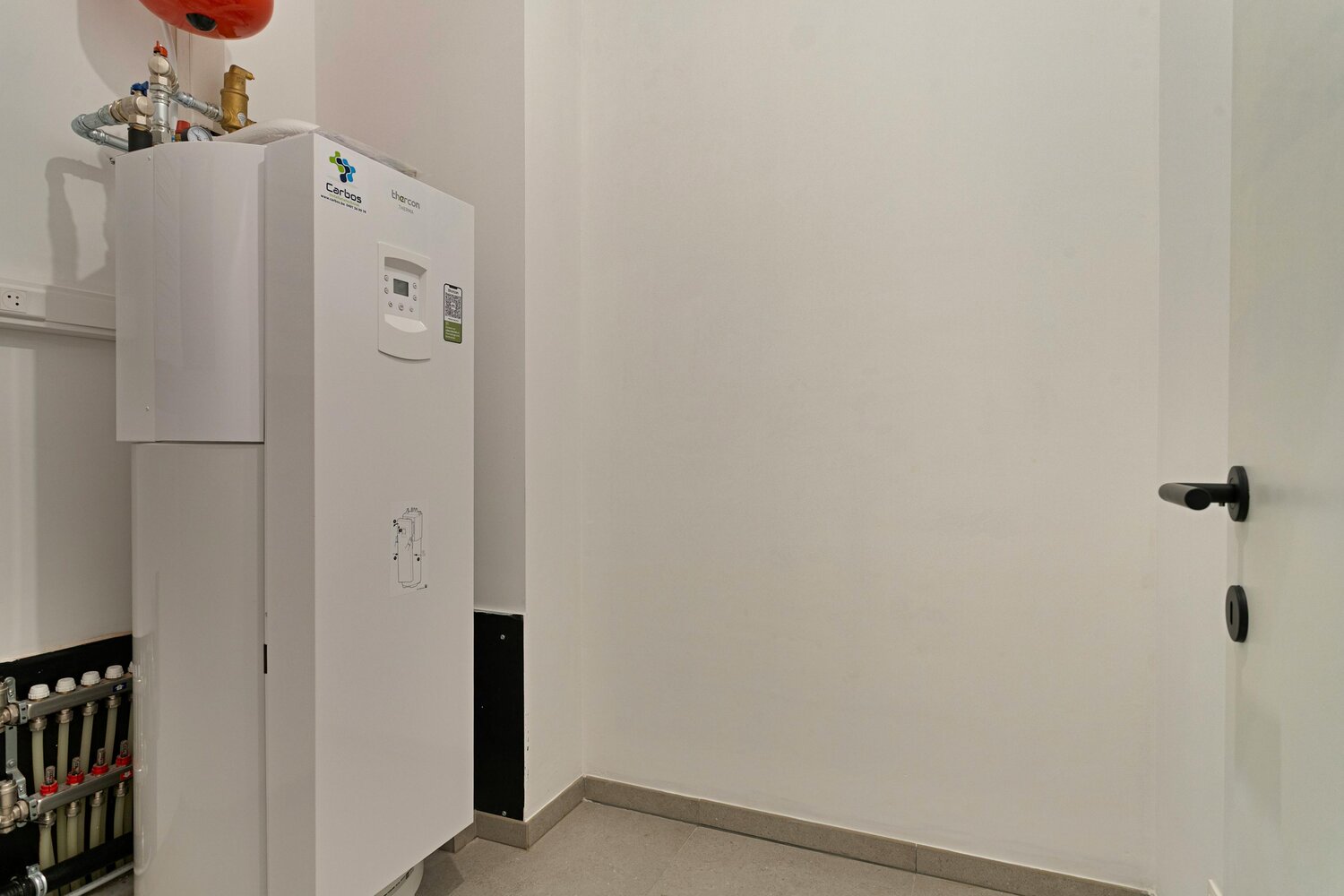 Gelijkvloers: Ruime inkomhal met apart toilet en ruime berging (technische ruimte) - lichtrijke leefruimte met hoge plafonds en volledig geïnstalleerde open keuken - ruim terras met verbinding naar de leefruimte en de private tuin - prachtige slaapkamer met aansluitende badkamer voorzien van inloopdouche en badkamermeubel - voorziene bergruimte in de gemeenschappelijke inkom.