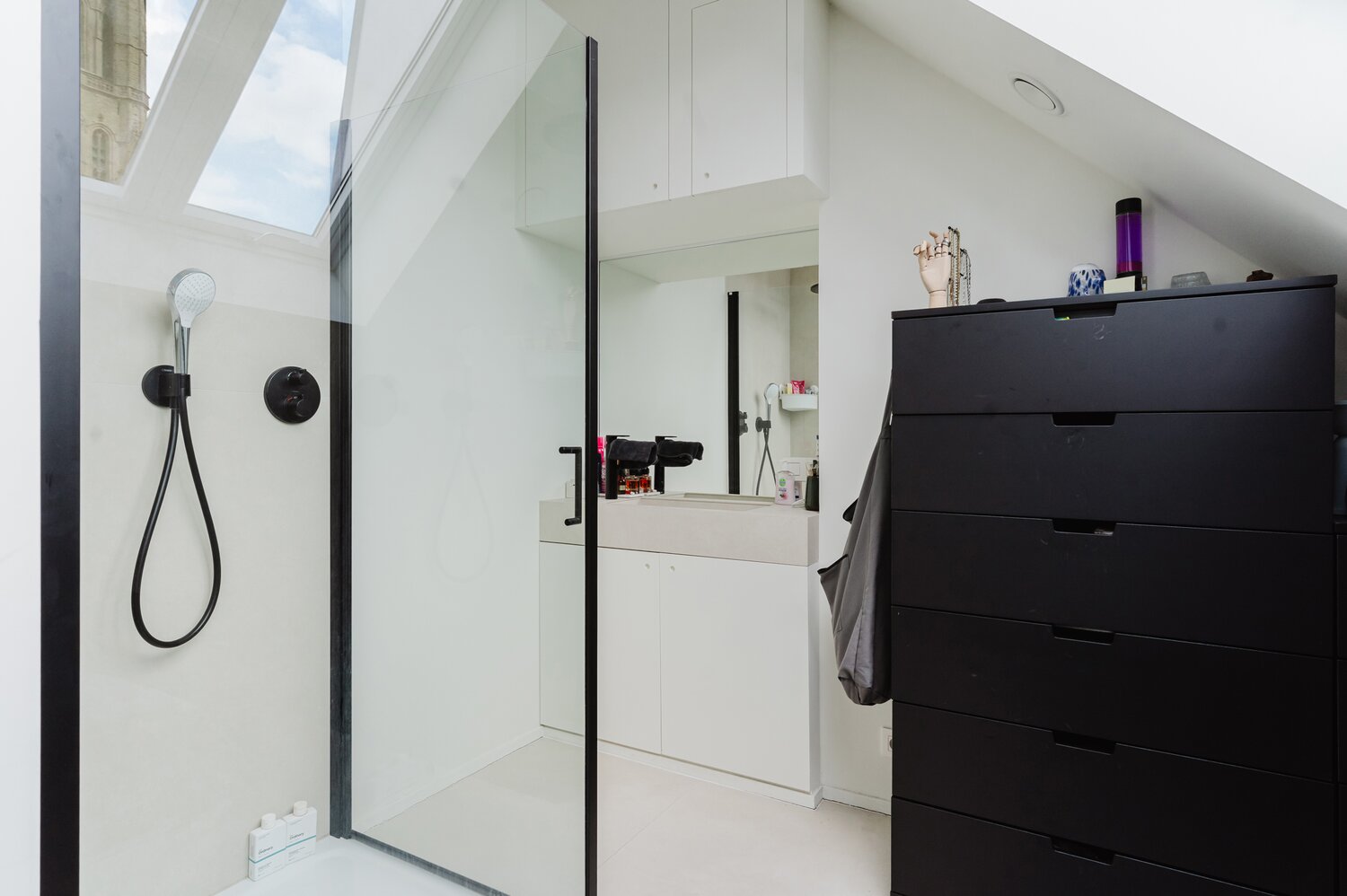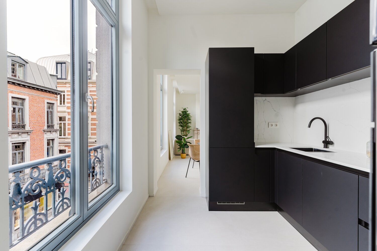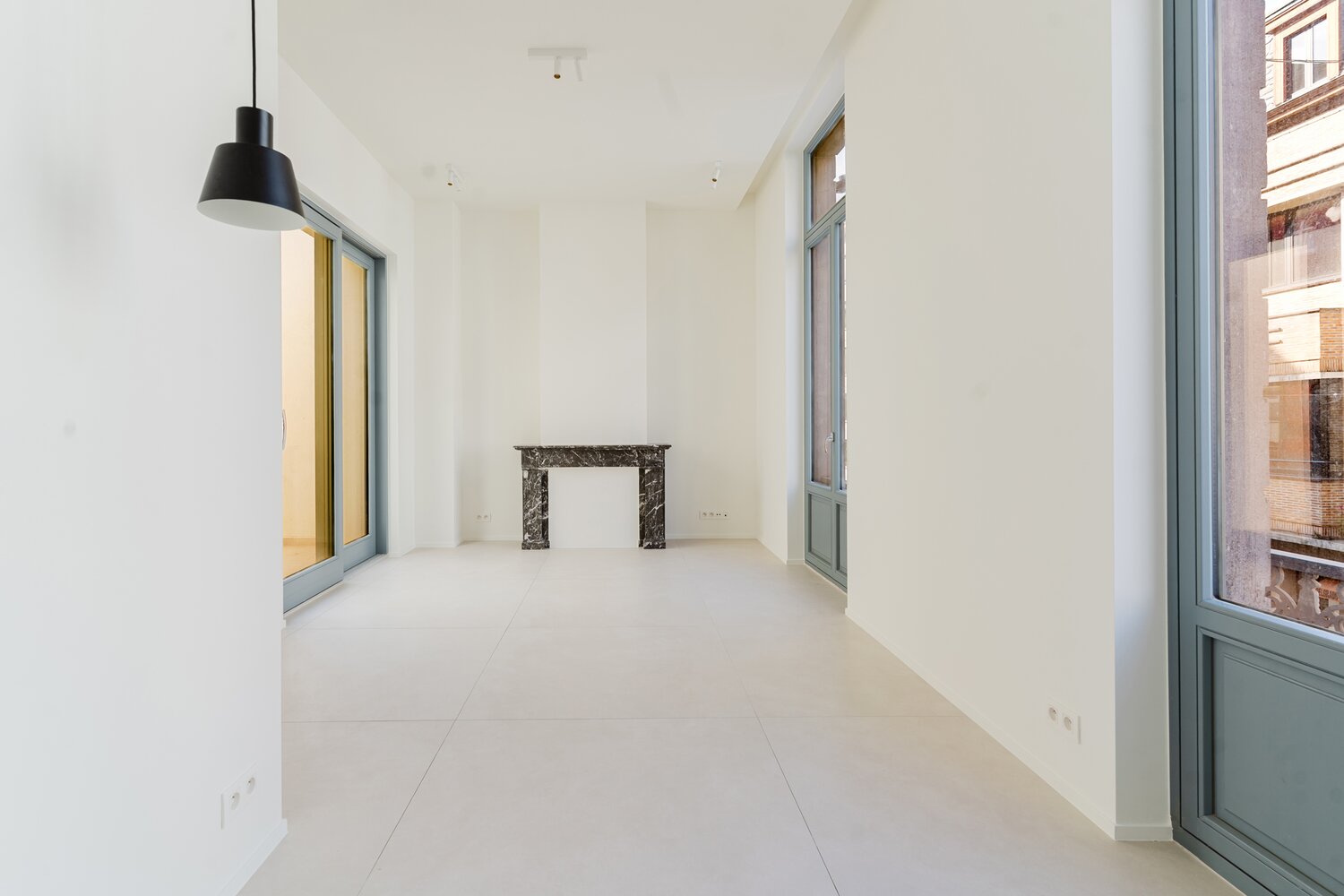 - 1e & 2e verdieping: twee lichtrijke appartementen met 1 slaapkamer en terras, hoge plafonds en grote ramen