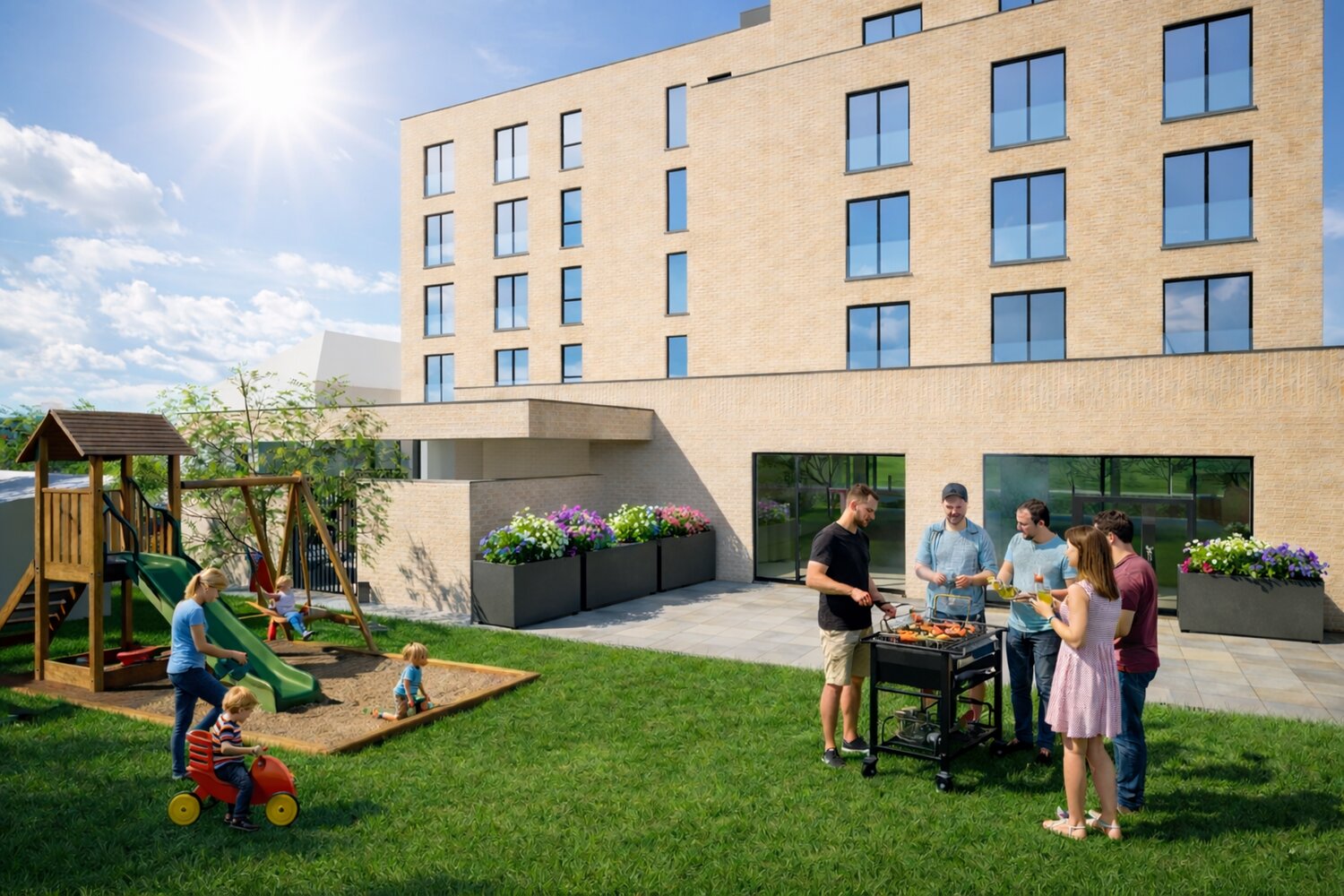 Verder maken de ecologische bouwkeuzes, de efficiënte ruimte-indeling en het gebruik van duurzame materialen de woonbeleving compleet. Het project biedt extra voorzieningen zoals een gemeenschappelijke afval- en fietsenberging en een groenzone achteraan, in te richten naar de wensen van de bewoners. Als extra comfort wordt de mogelijkheid geboden tot de aankoop van een ondergrondse parkeerplaats en/of ondergrondse berging.