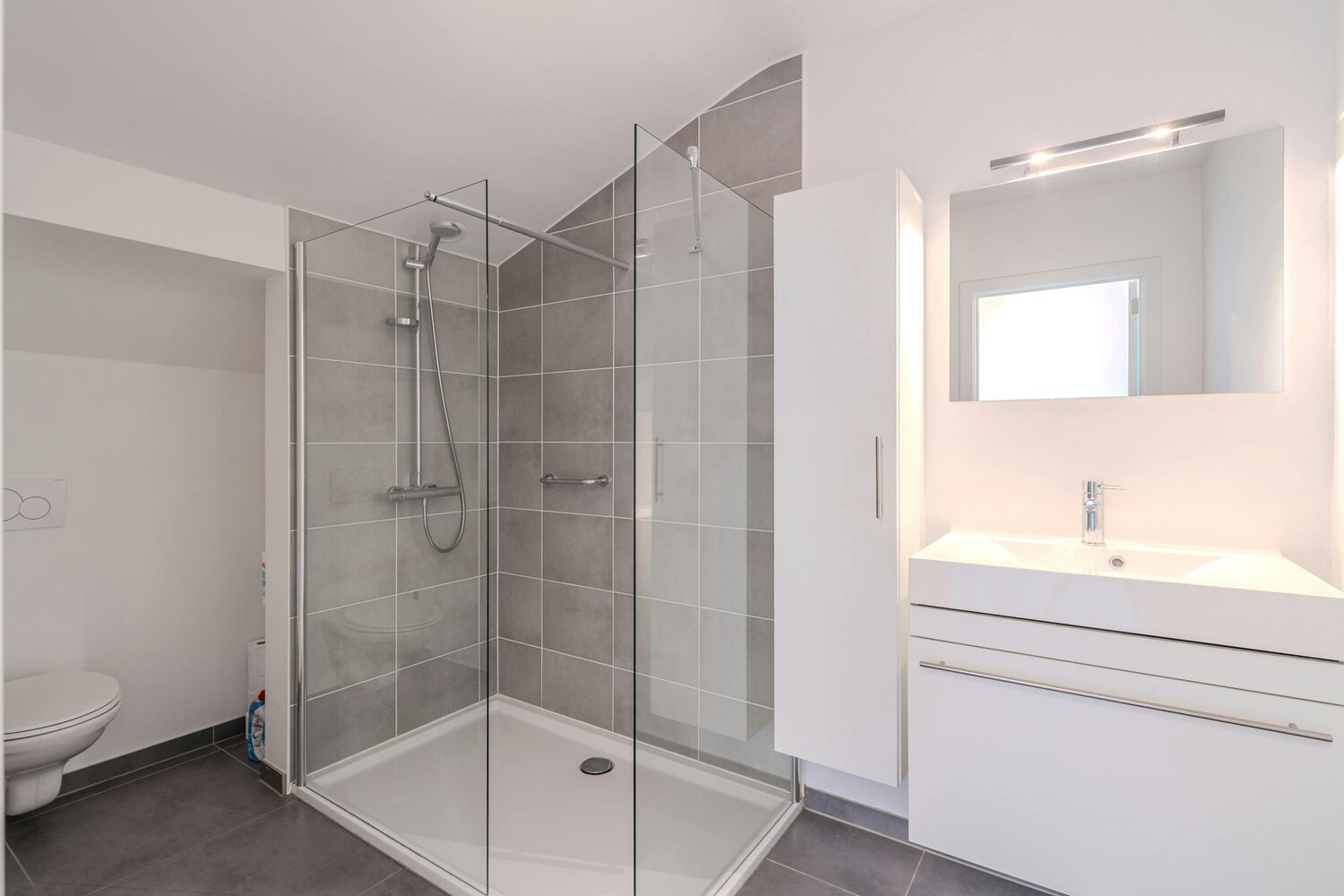 Badkamer met inloopdouche, lavabo en toilet