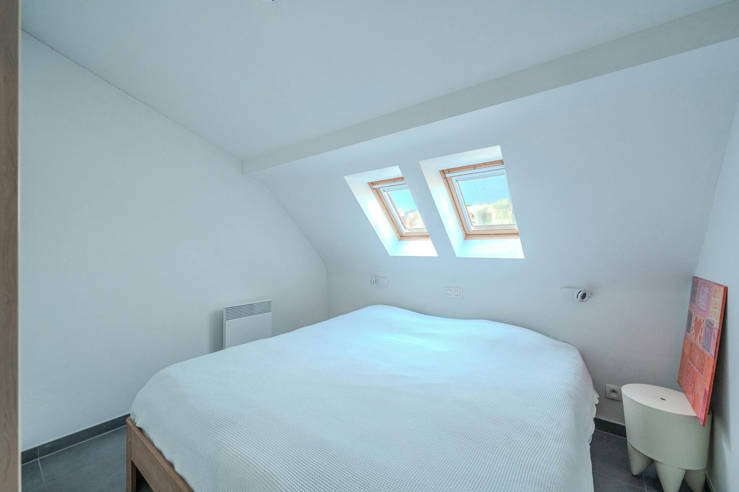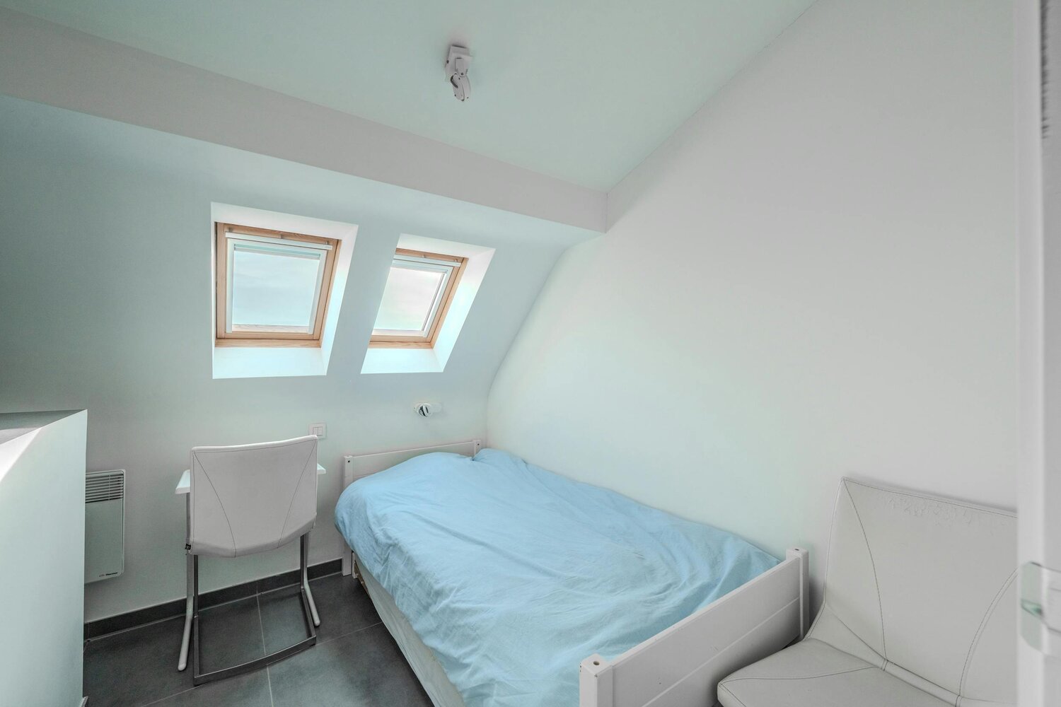 Op de bovenverdieping bevinden zich twee lichtrijke slaapkamers met voldoende opbergmogelijkheden en een moderne badkamer met lavabo, inloopdouche en toilet.
