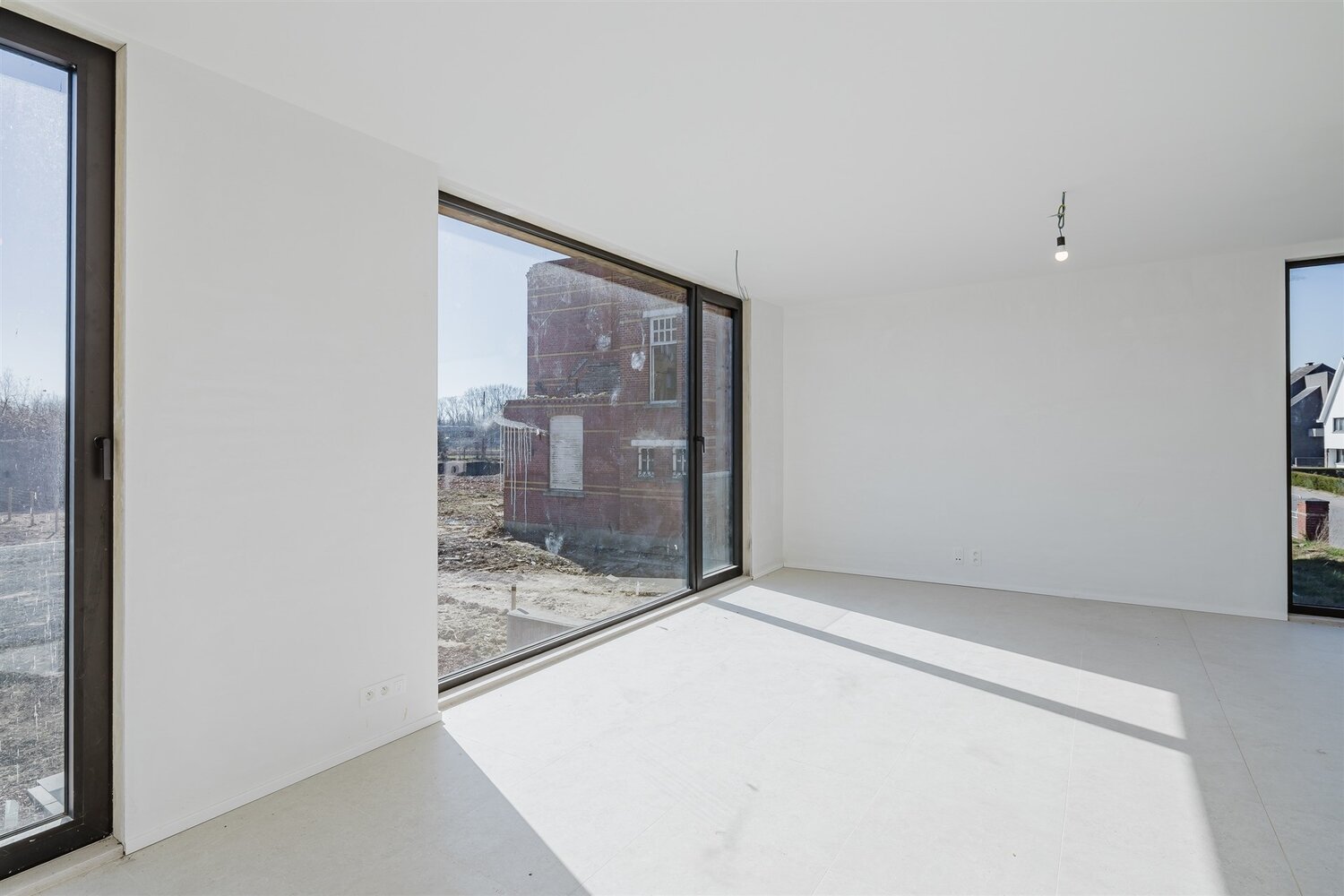 De architectuur werd bewust stijlvol en tijdloos sober gehouden als perfect contrast met het mooie, rode gevelmetselwerk van de villa.