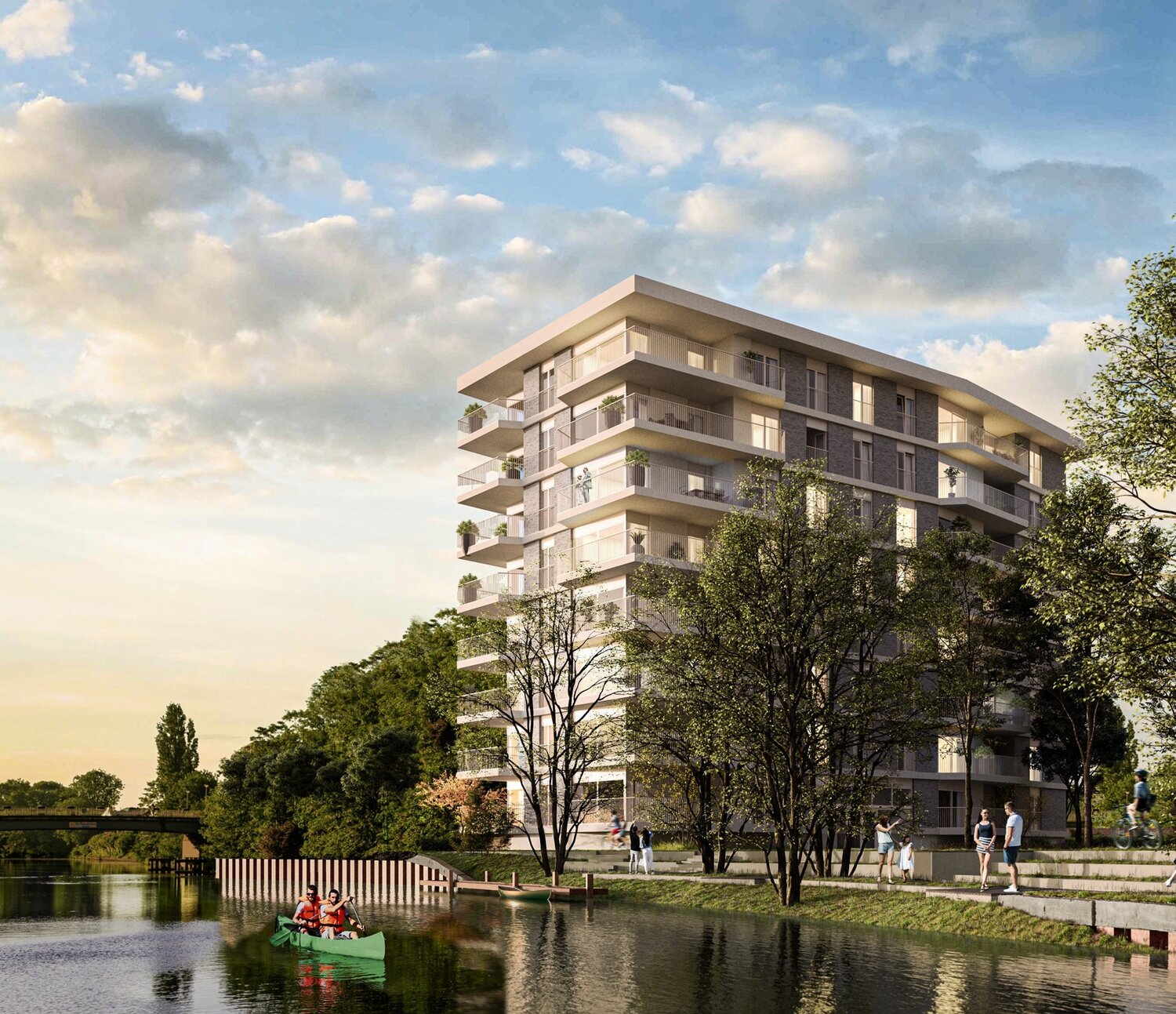 De combinatie van authentieke en nieuwe elementen geven de site haar buitengewone karakter. We hebben voor elk wat wils; appartementen met zicht op het park of met zicht op de Leie.